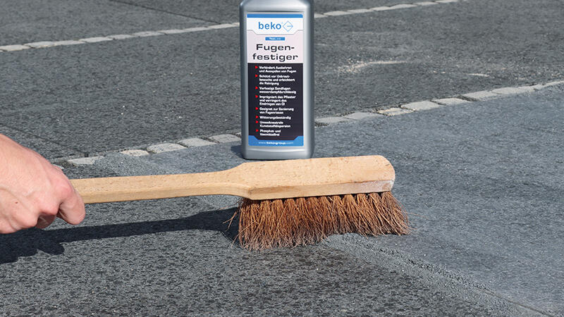 Sicherung von Flugsand in Steinpflasterungen, imprägniert das Pflaster und verringert das Eindringen von Öl, zur Oberflächenversiegelung und zur Verfestigung von Sandfugen in Natursteinpflaster, Betonsteinpflaster, Platten- und Klinkerbelägen, geeignet für Flächen mit vorwiegend Fußgängerbelastung wie z.B. Gartenwege, Terrassen, Hauseingangsbereiche, Garageneinfahrten sowie zur Sanierung von Fugenrissen im Pflasterbereich.